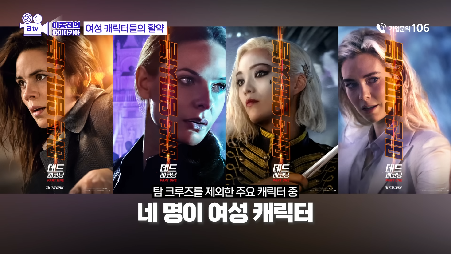 <미션 임파서블: 데드 레코닝 PART ONE>에서 ‘톰 크루즈’를 제외한 주요 캐릭터 네 명이 여성 캐릭터입니다.
