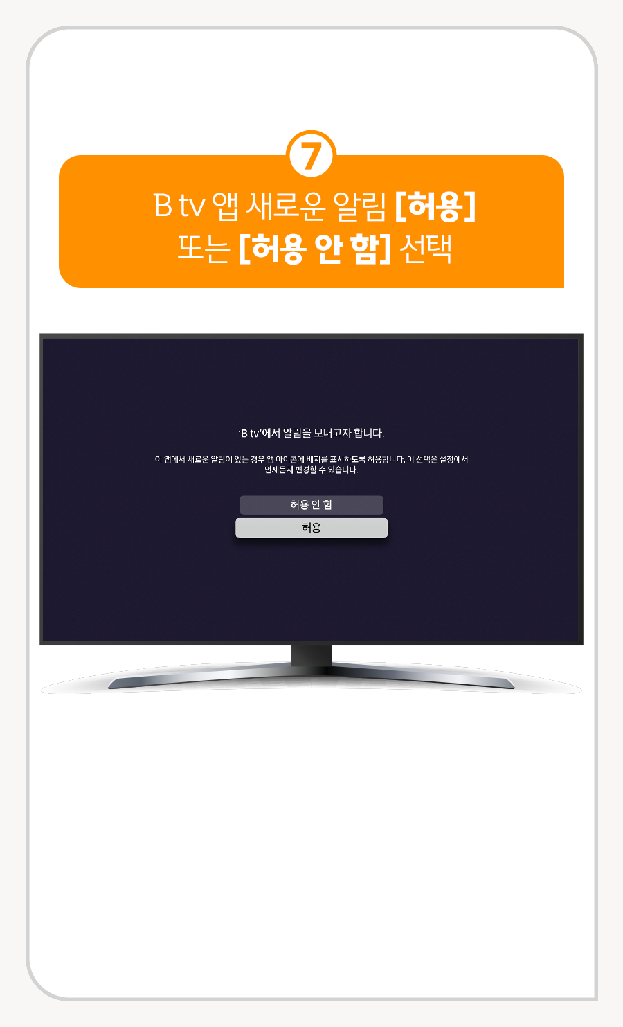 ⑦ B tv 앱 새로운 알림 [허용] 또는 [허용 안 함] 선택