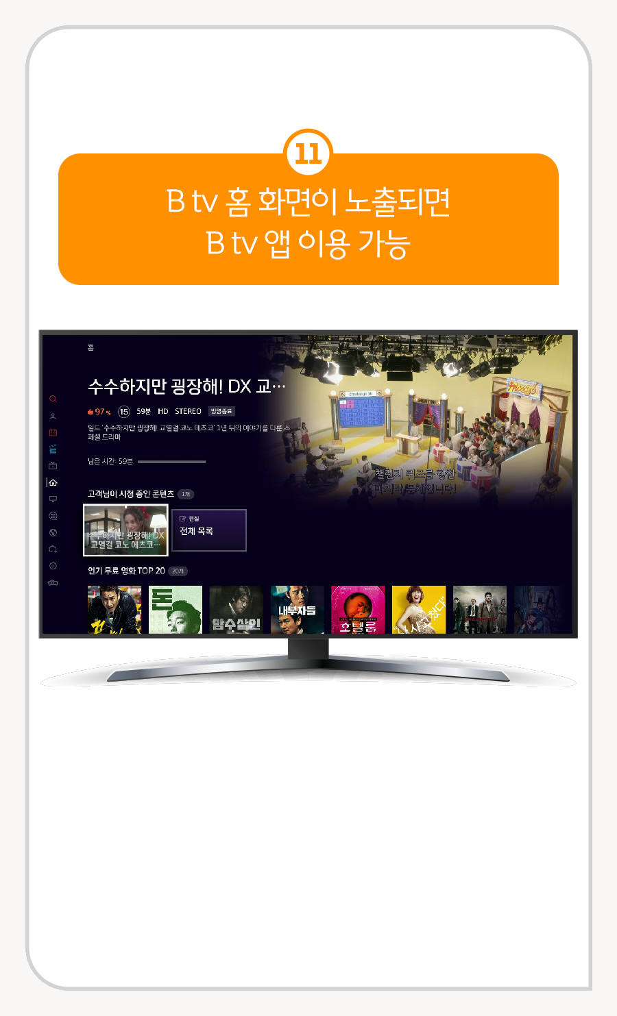 ⑨ 설정 완료 후 B tv 로고가 나타남