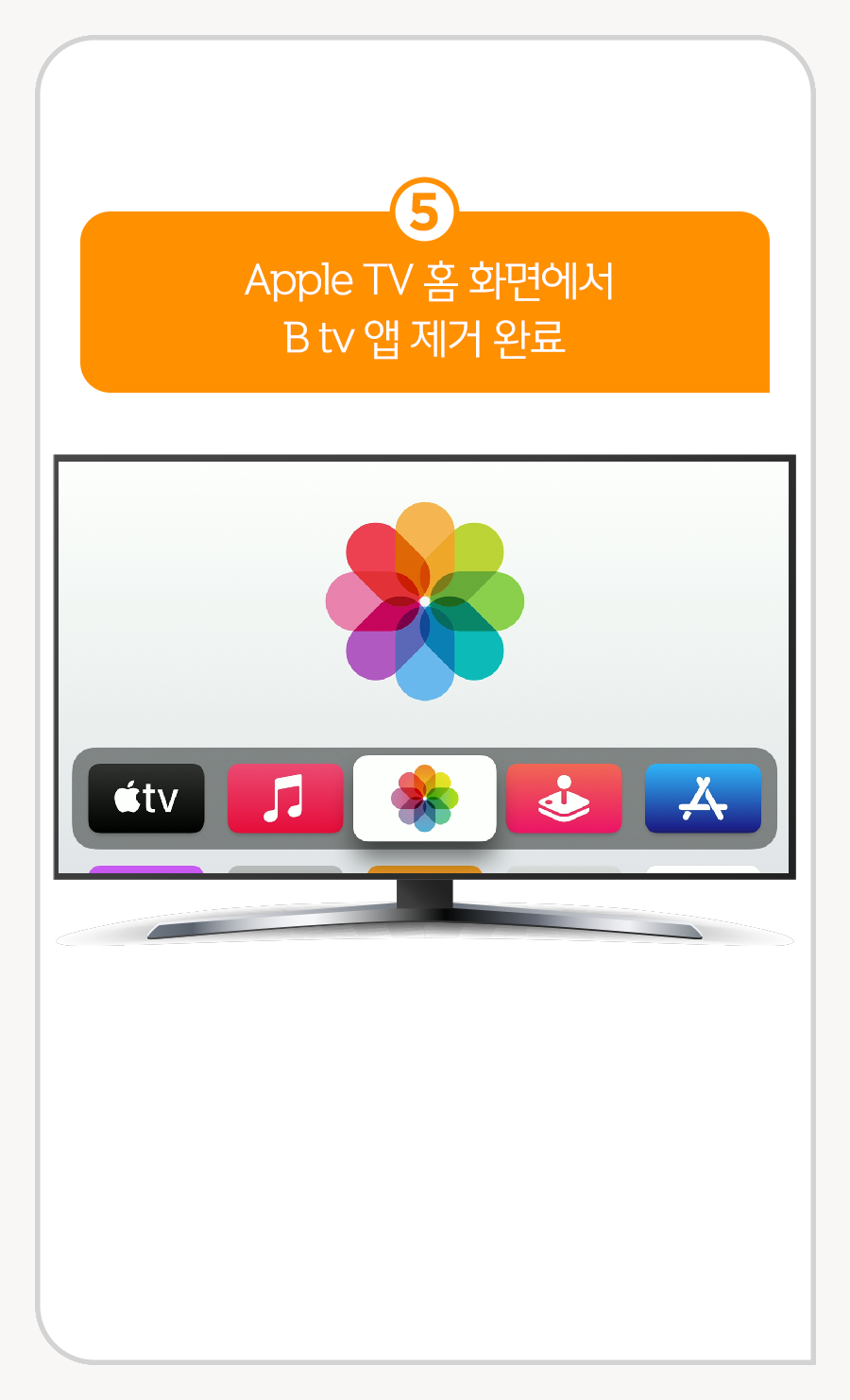 ⑤ Apple TV 홈 화면에서 B tv 앱 제거 완료