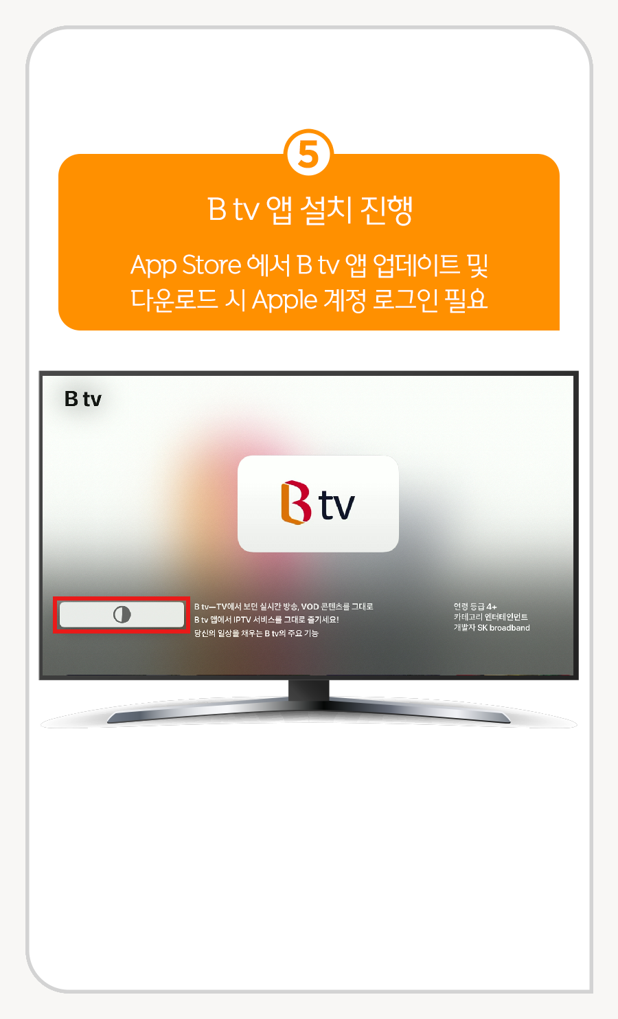 App Store 에서 B tv 앱 업데이트 및 다운로드 시 Apple 계정 로그인 필요
