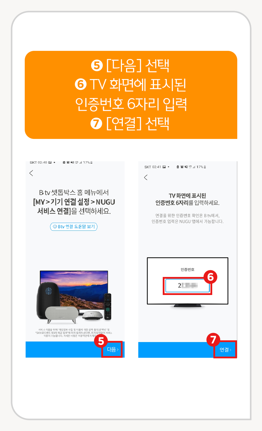 6) TV 화면에 표시된 인증번호 6자리 입력
