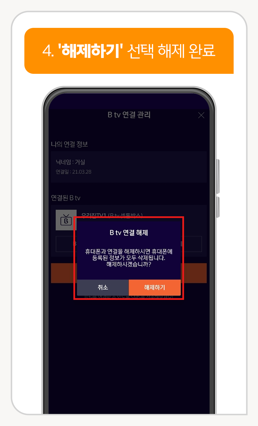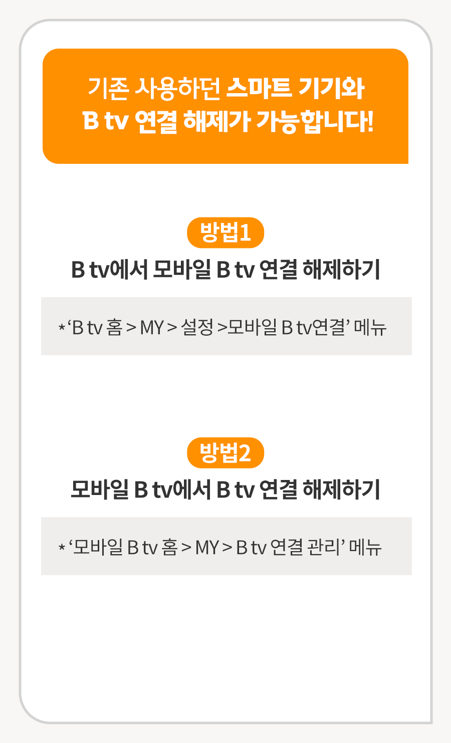 기존 사용하던 스마트 기기와 B tv 연결 해제가 가능합니다!