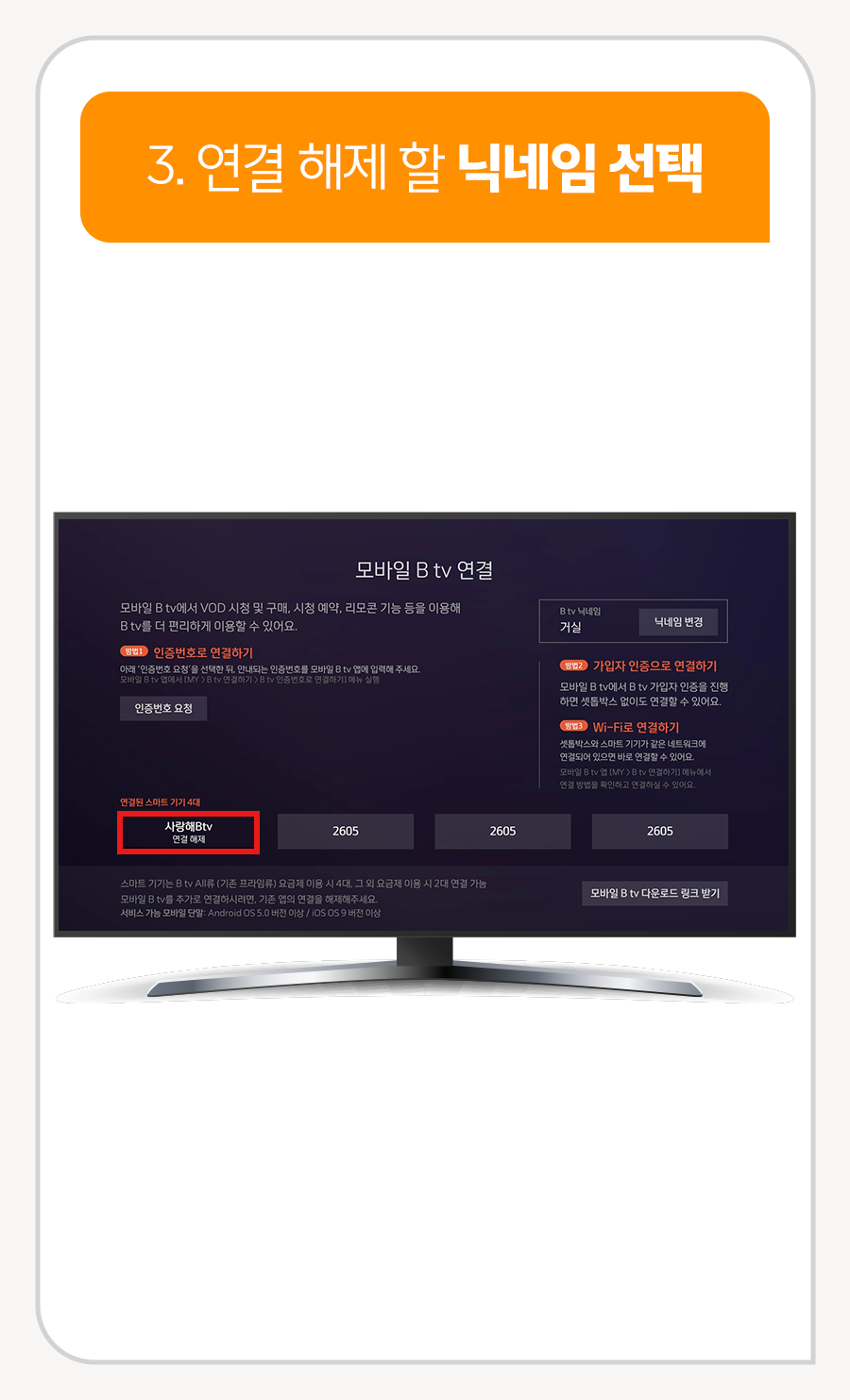 기존 사용하던 스마트 기기와 B tv 연결 해제가 가능합니다!