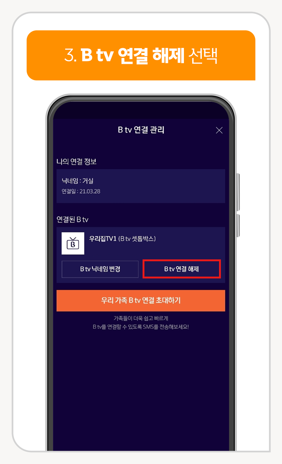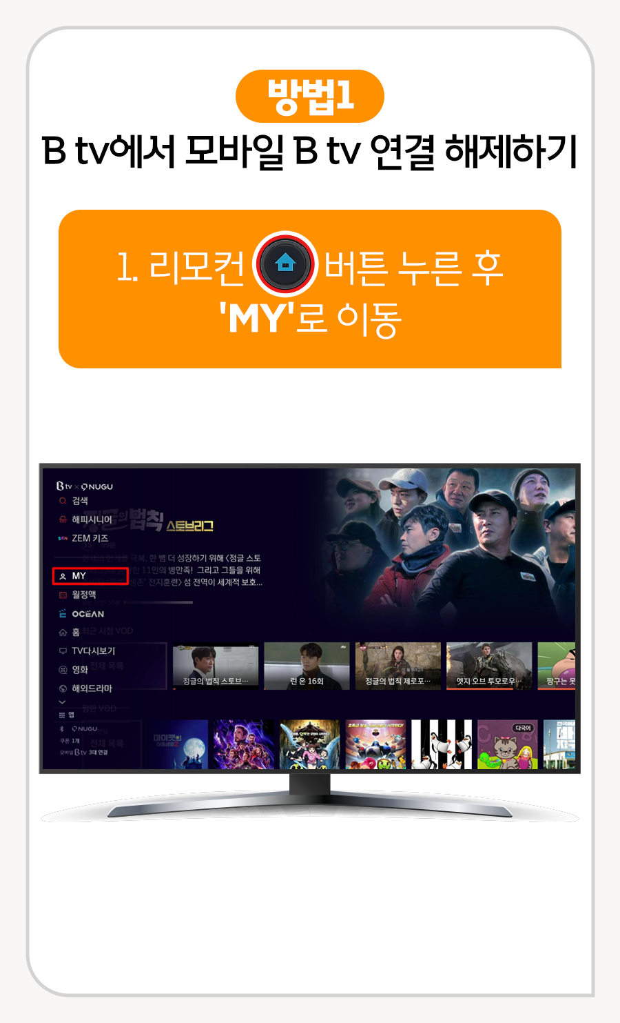 방법1) B tv에서 모바일 B tv 연결 해제하기