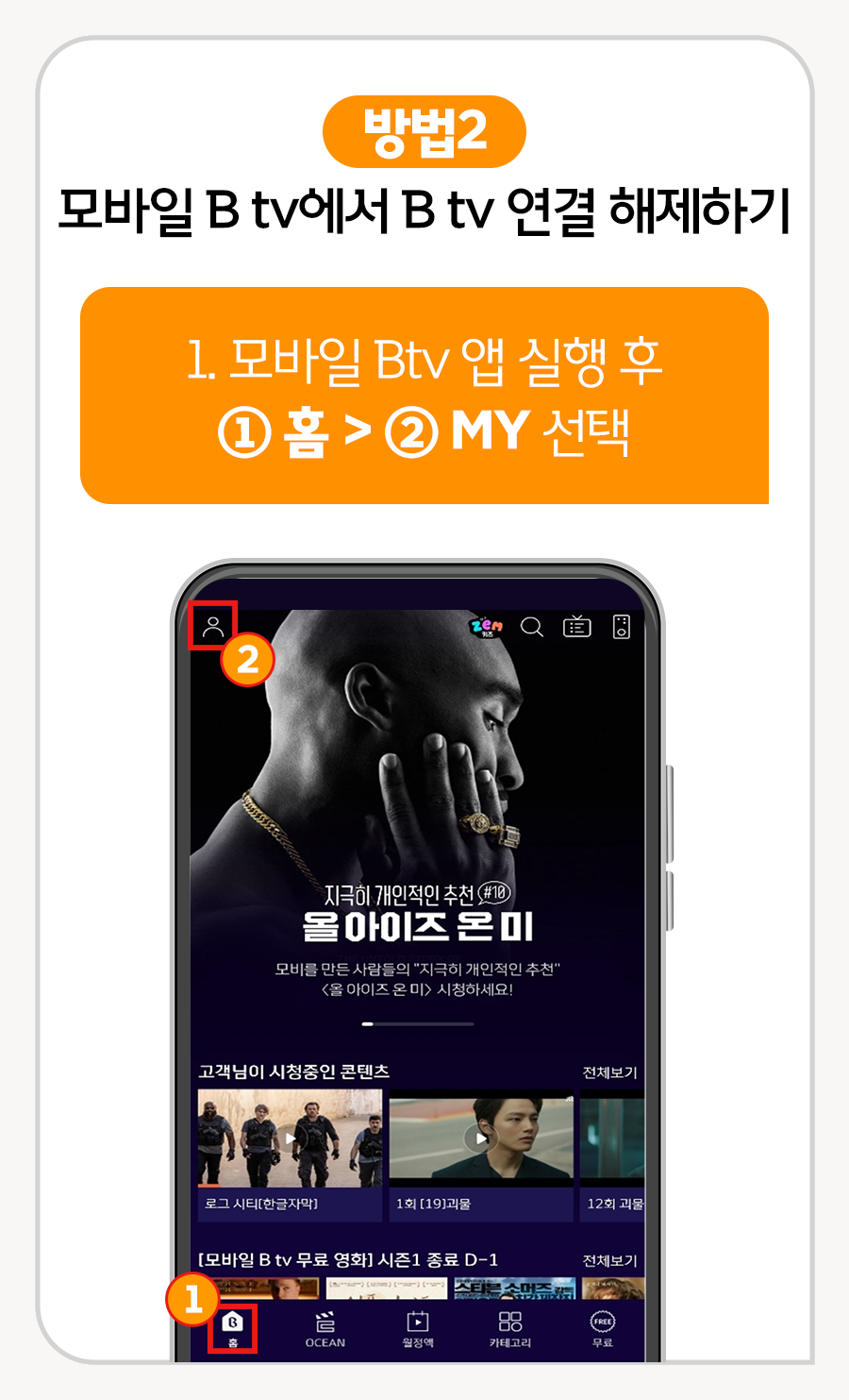 방법2) 모바일 B tv에서 B tv 연결 해제하기