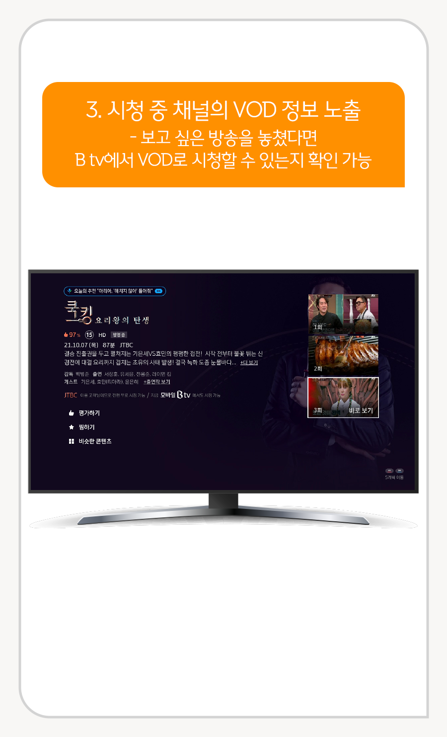 보고 싶은 방송을 놓쳤다면 B tv에서 VOD로 시청할 수 있는지 확인 가능