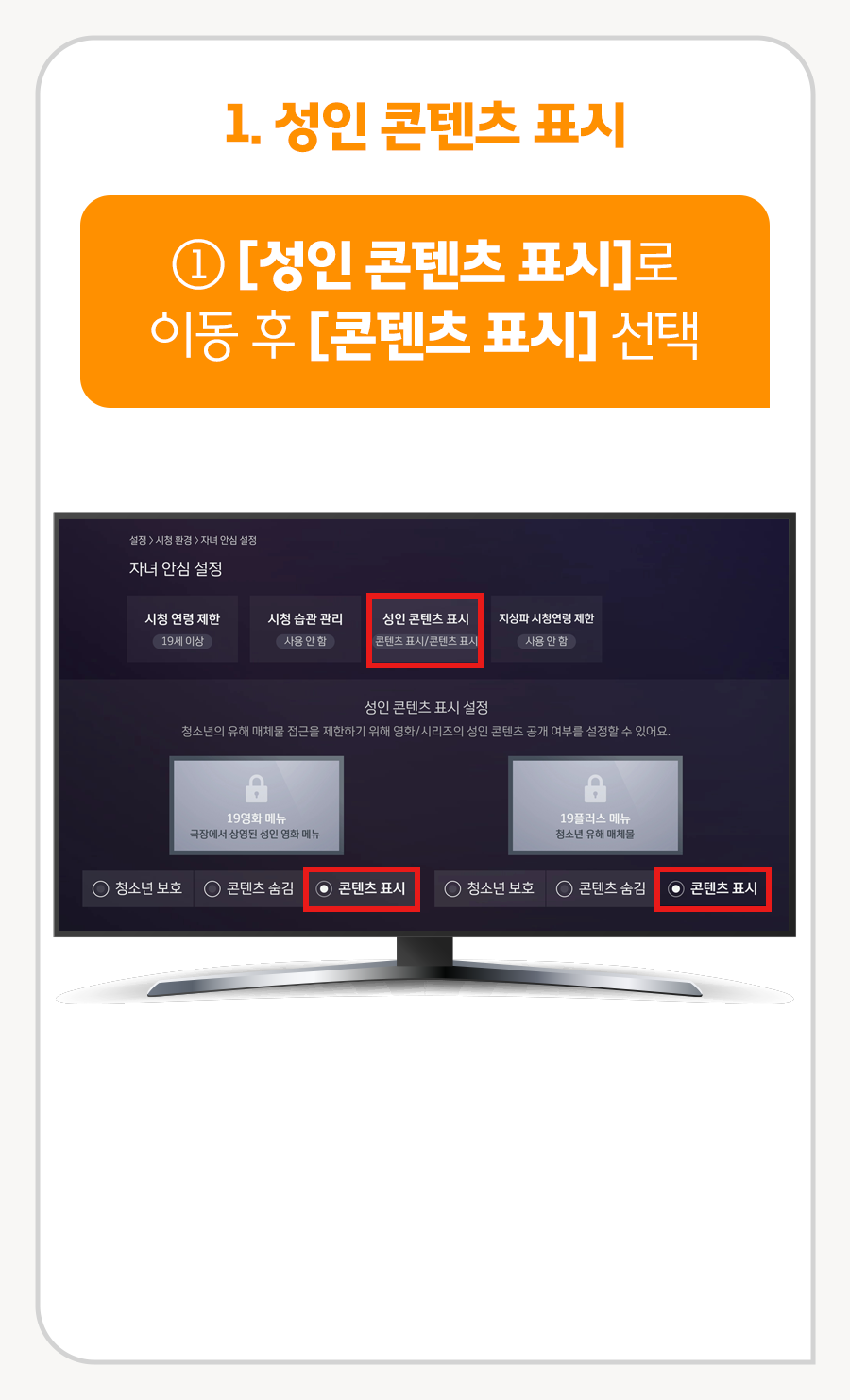 ① [성인 콘텐츠 표시]로 이동 후 [콘텐츠 표시] 선택