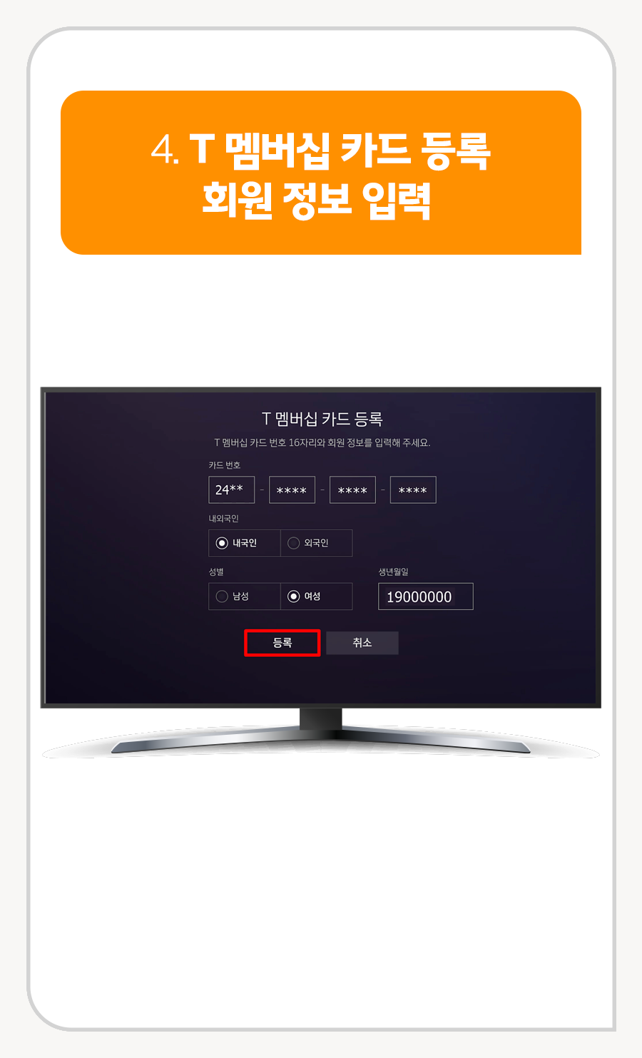 4. T 멤버십 카드 등록 회원 정보 입력