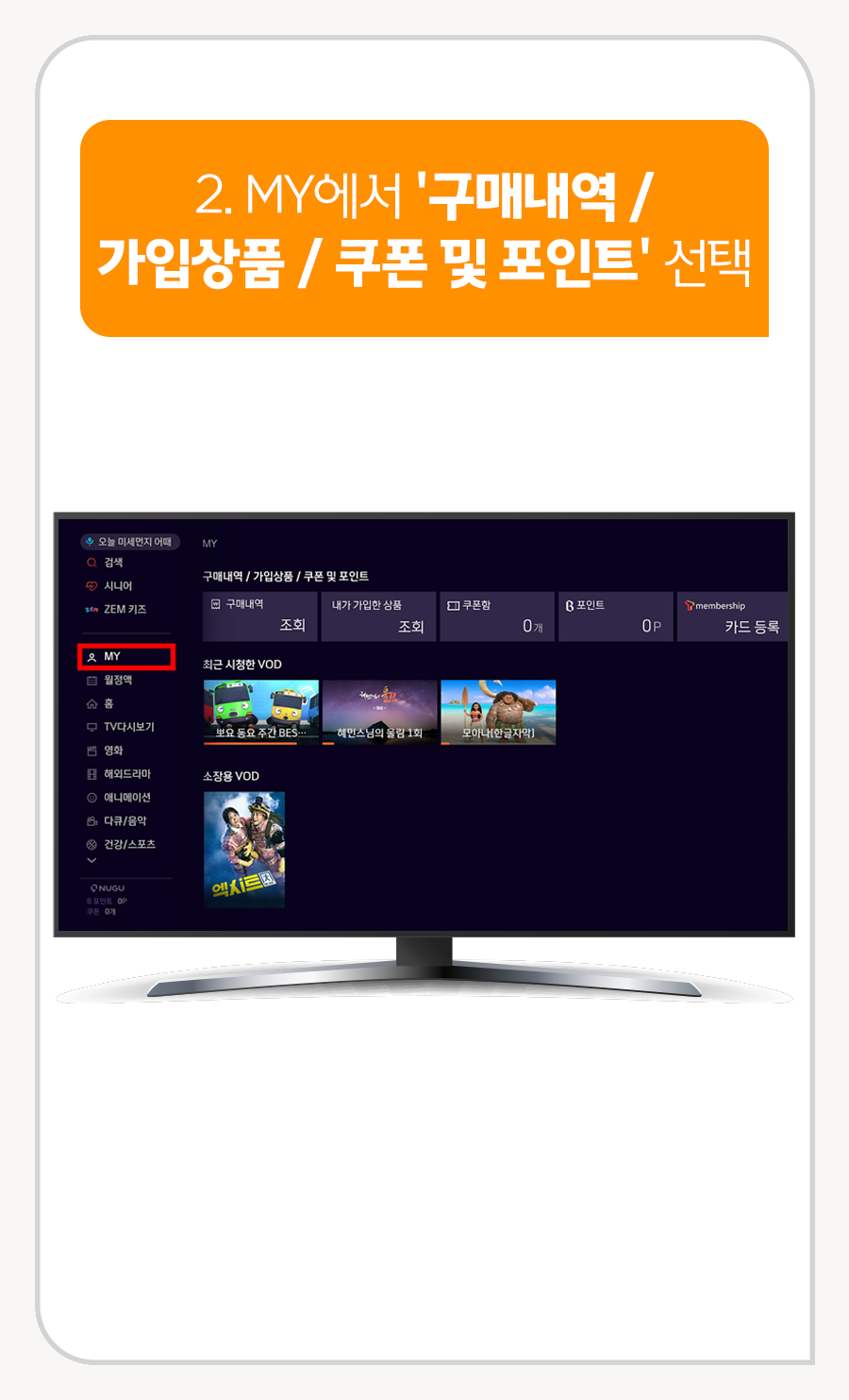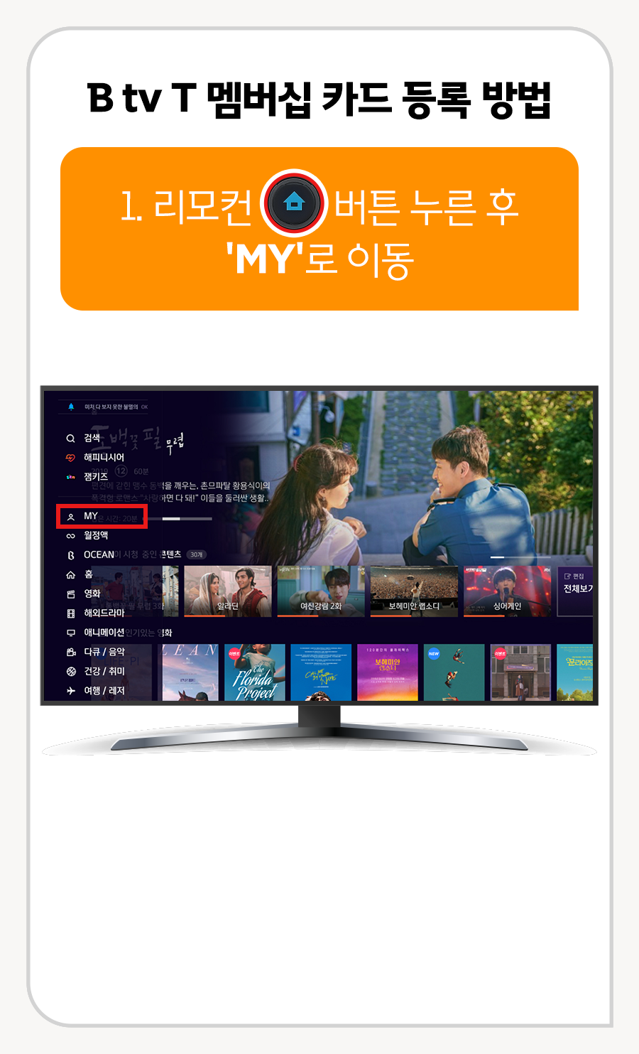1. 리모컨 홈 버튼 누른 후 [MY]로 이동