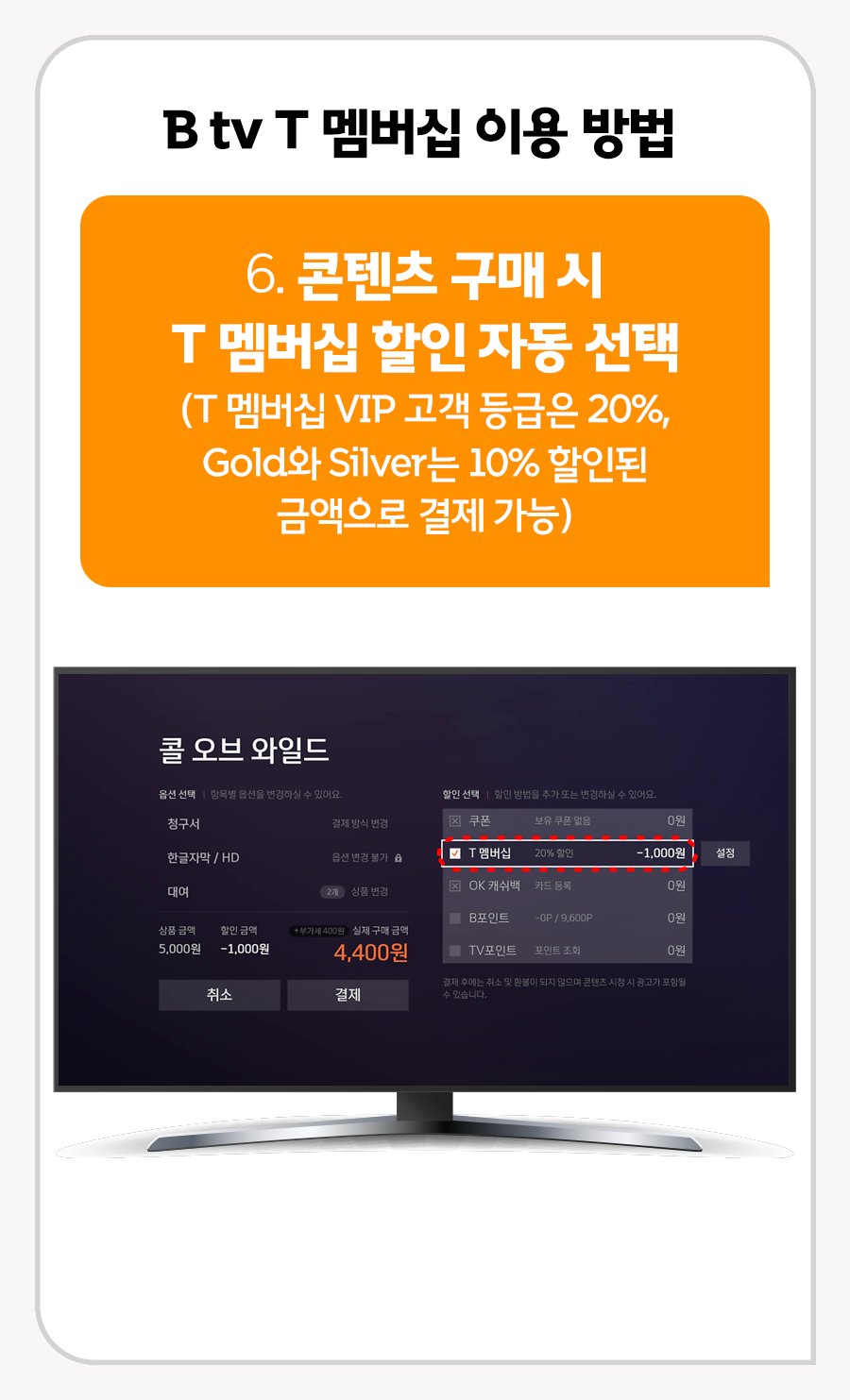 6. 콘텐츠 구매 시 T 멤버십 할인 자동 선택