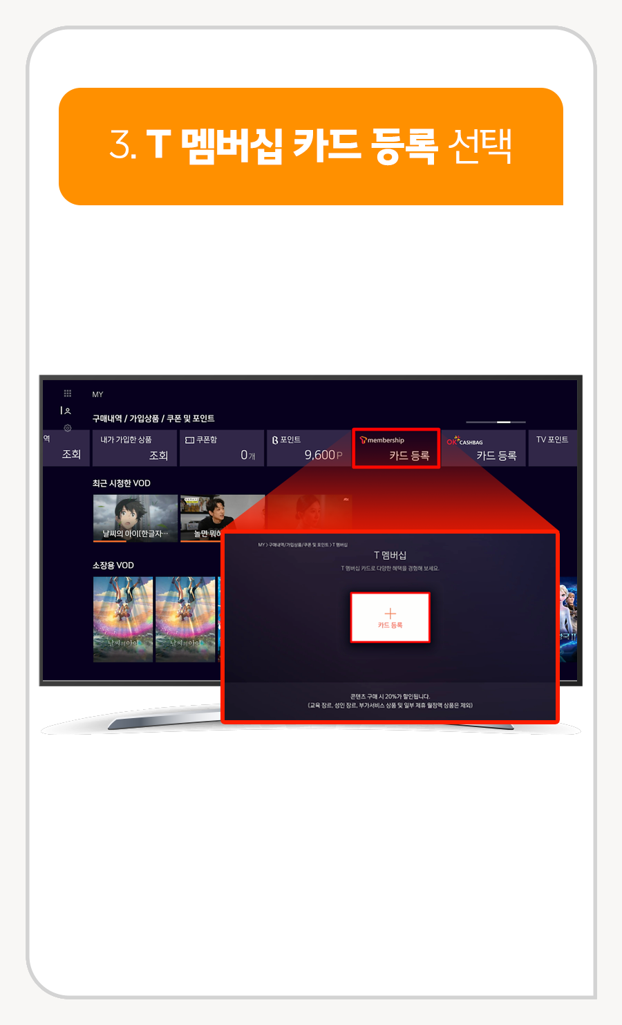 3. T 멤버십 카드 등록 선택