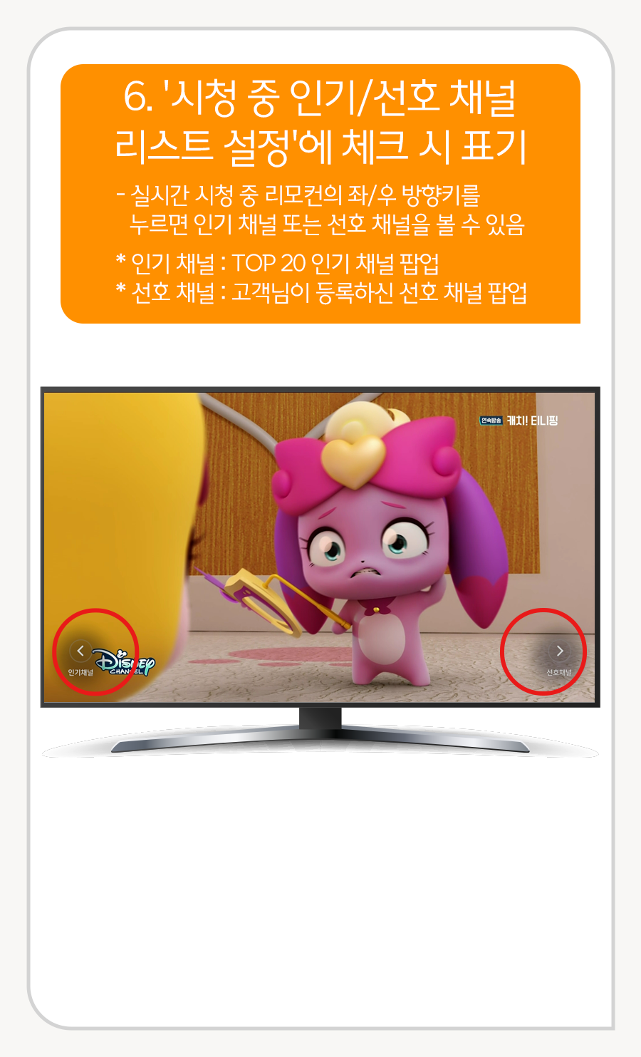 6. [시청 중 인기/선호 채널 리스트 설정[에 체크 시 표기