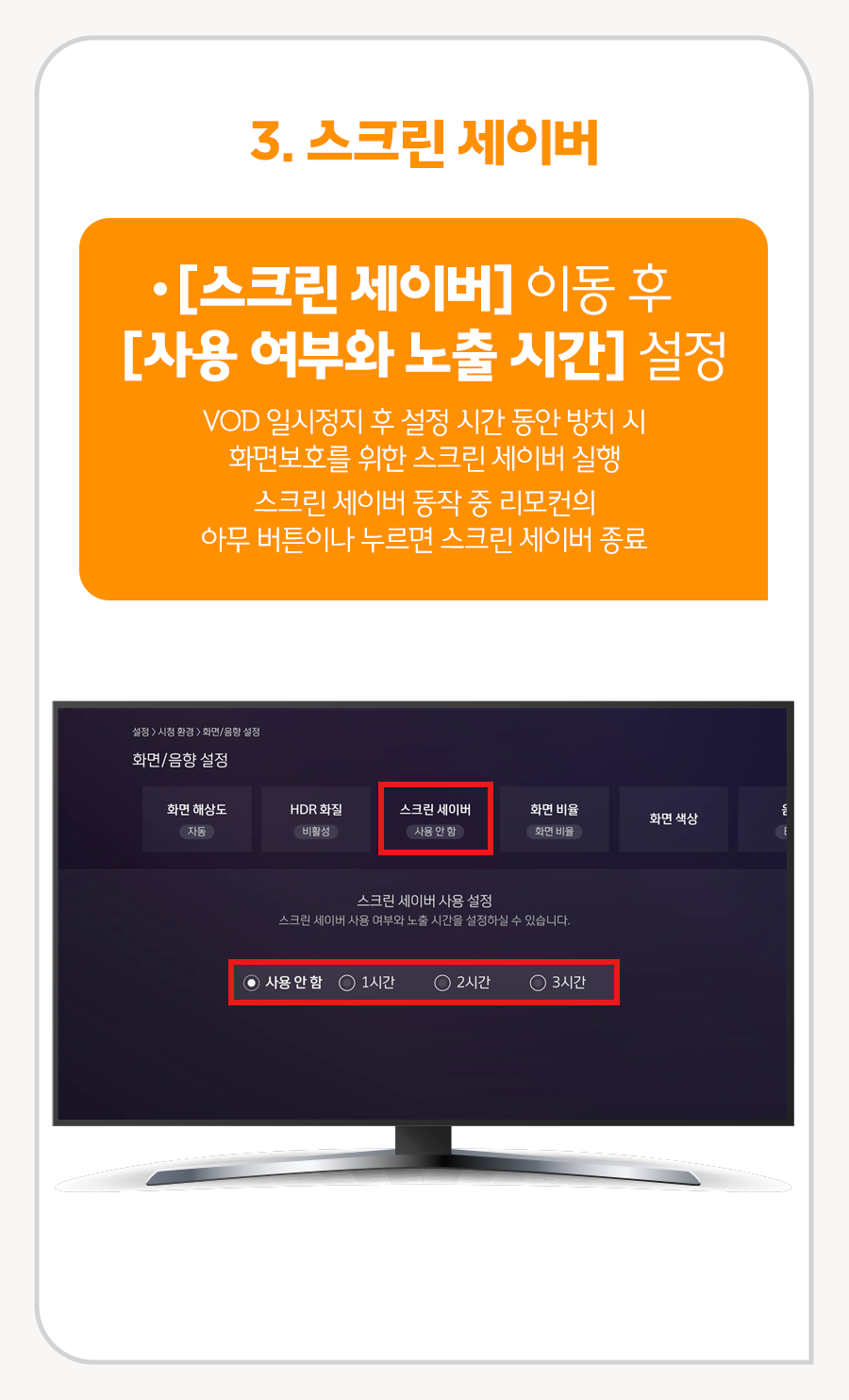 • [스크린 세이버] 이동 후 [사용 여부와 노출 시간] 설정
