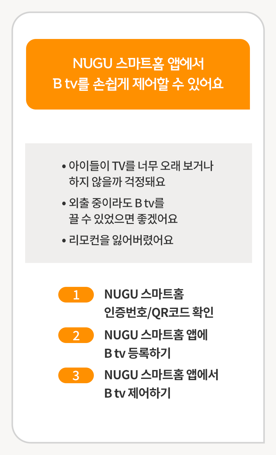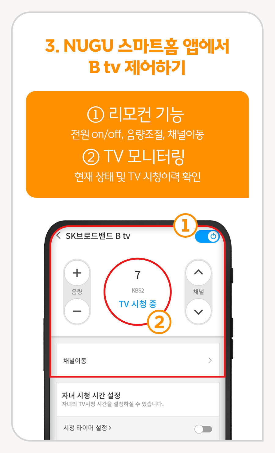 ③ NUGU 스마트홈 앱에서 B tv 제어하기