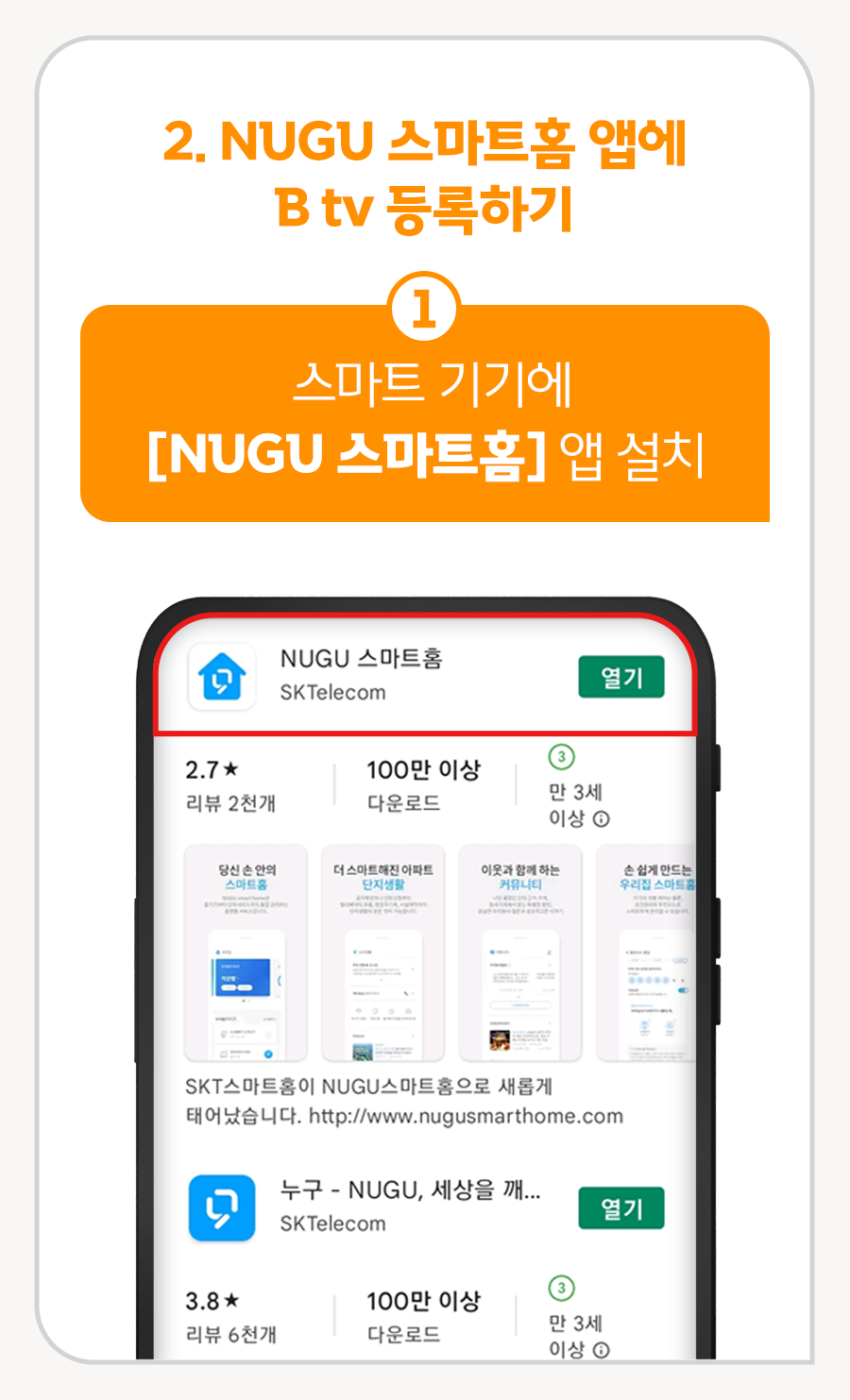 ① 스마트 기기에 [NUGU 스마트홈] 앱 설치
