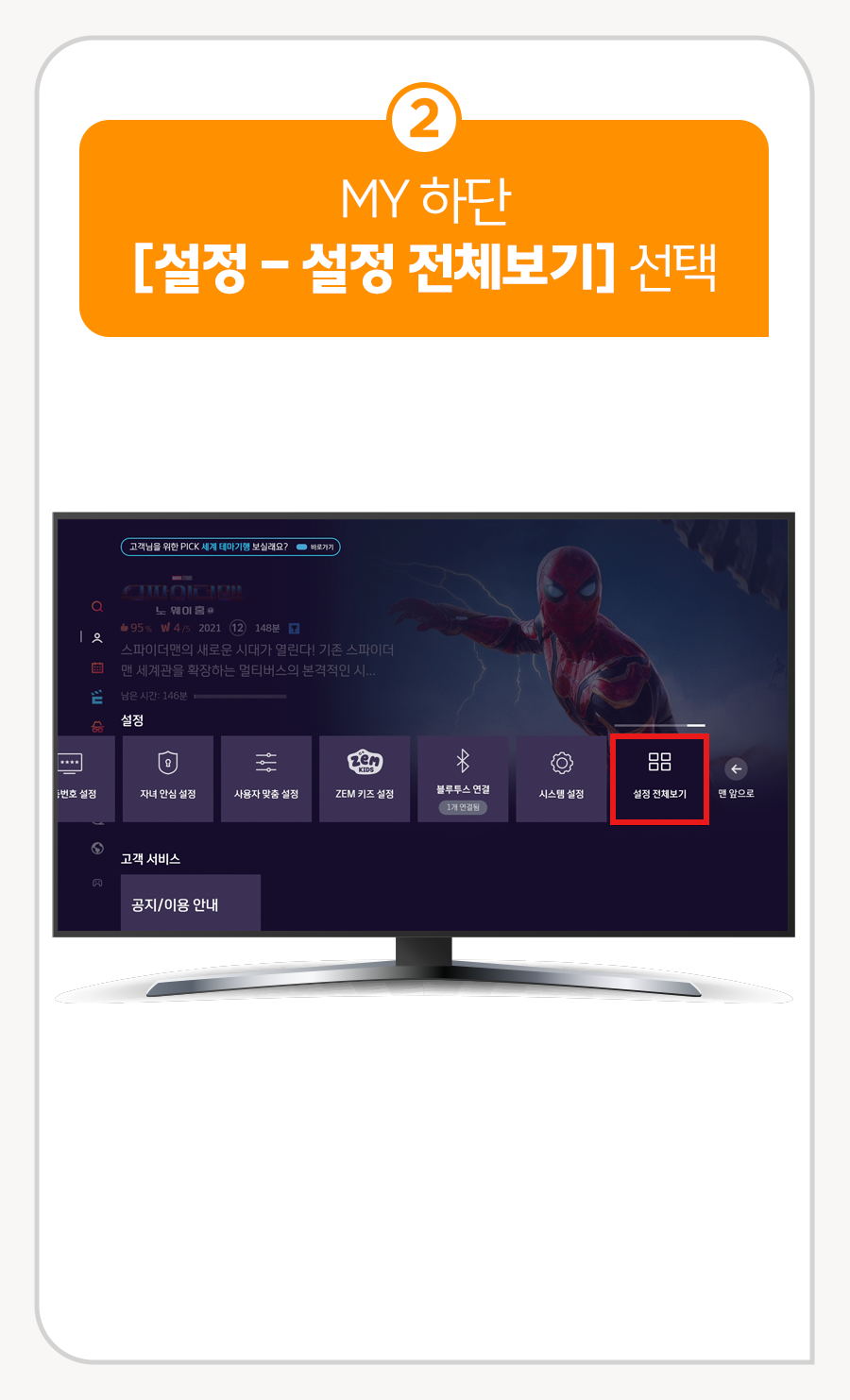② [MY] 하단 [설정] ▶ [설정 전체보기] 선택
