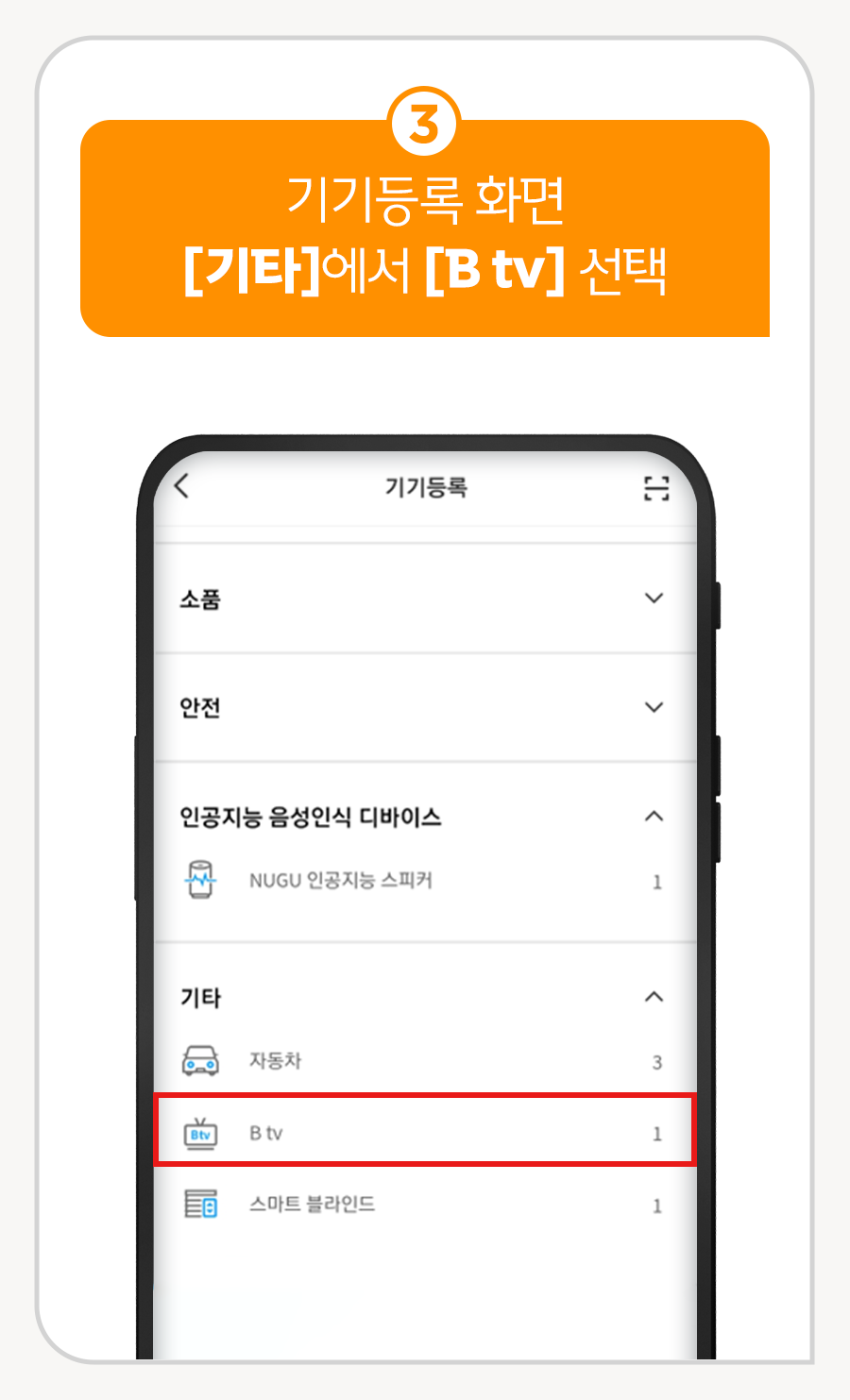 ③ 기기등록 화면 [기타]에서 [B tv] 선택