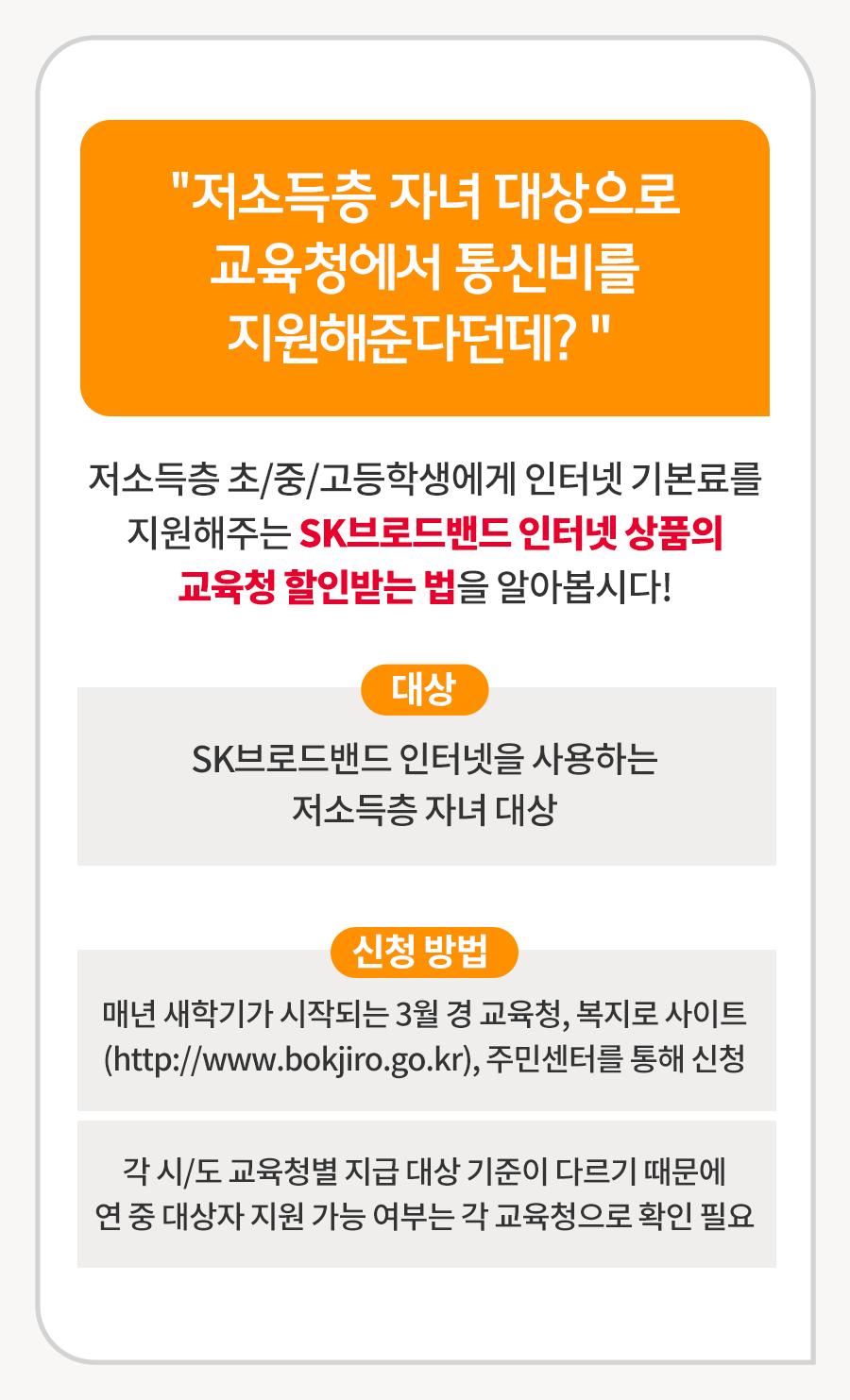 SK브로드밴드 인터넷 상품의 교육청 할인받는법을 알아봅시다!