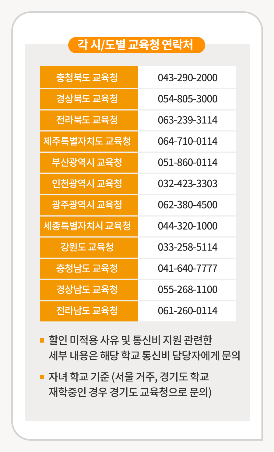 - 할인 미적용 사유 및 통신비 지원 관련한 세부 내용은 해당 학교 통신비 담당자에게 문의