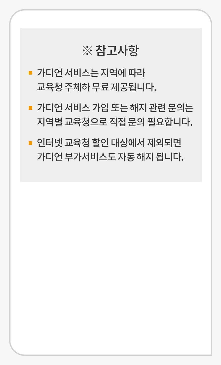 인터넷 교육청 할인 대상에서 제외되면 가디언 부가서비스도 자동 해지 됩니다.