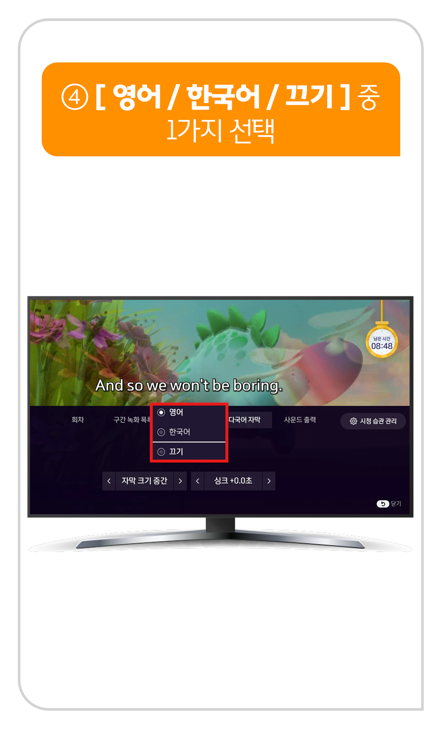 ④ [ 영어 / 한국어 / 끄기 ] 중 1가지 선택