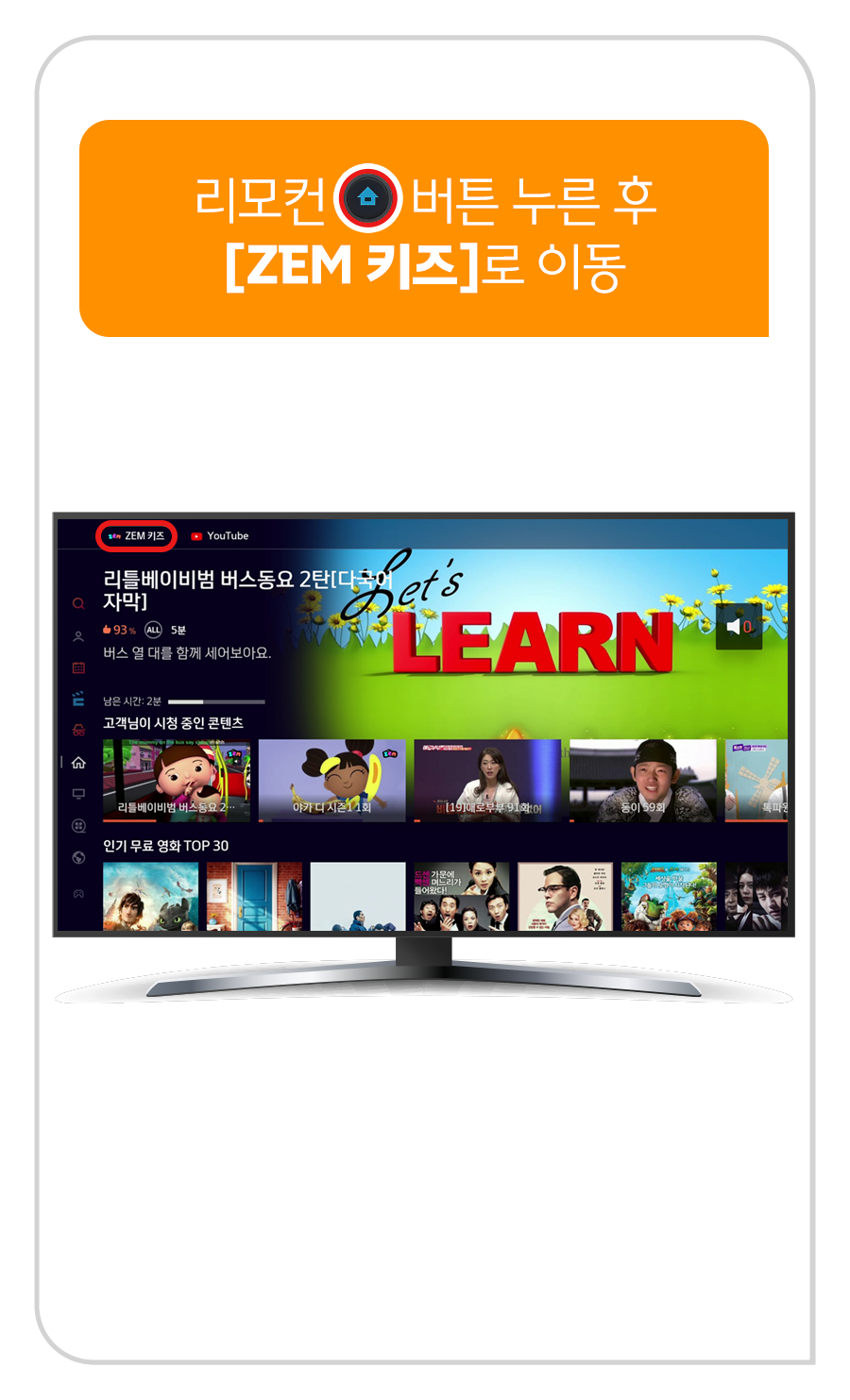 공통1) 리모컨 홈 버튼 누른 후 [ZEM]으로 이동