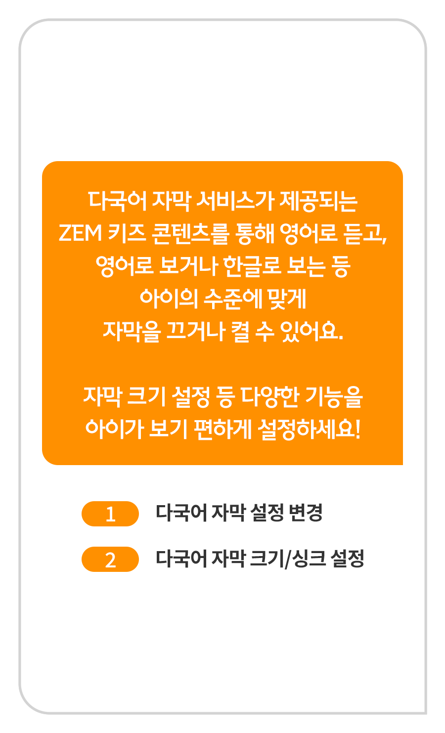 자막 크기 설정 등 다양한 기능을 아이가 보기 편하게 설정하세요!
