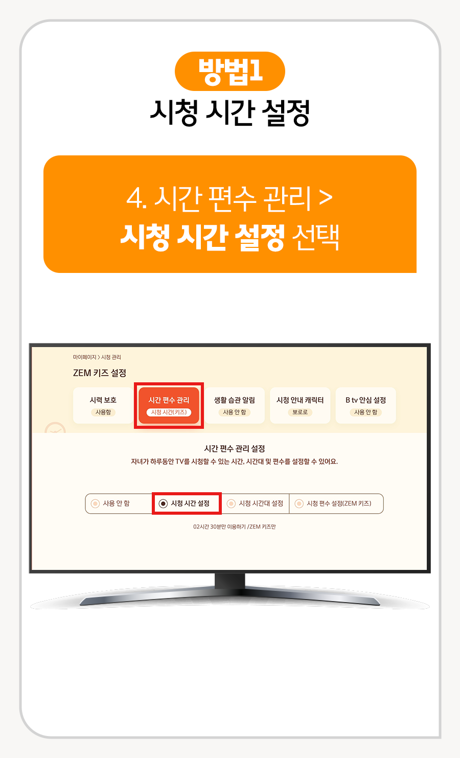 4. [시간 편수 관리] ▶ [시청 시간 설정] 선택