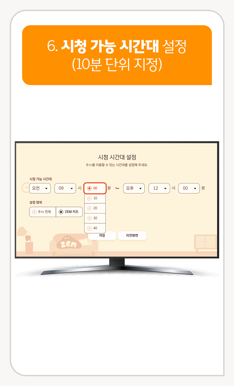6. 시청 가능 시간대 설정 (10분 단위 지정)