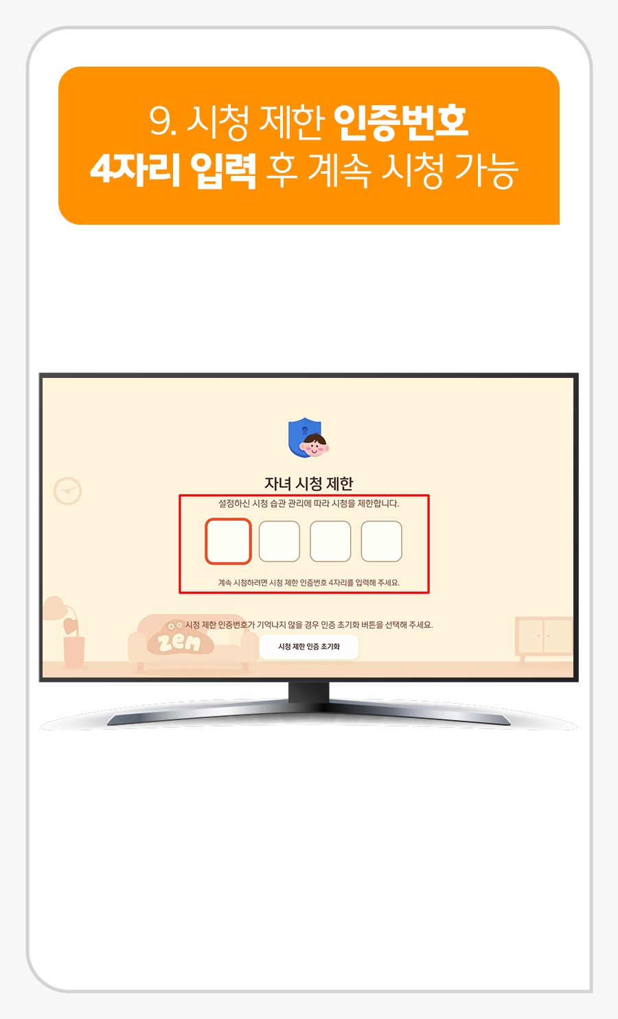 9. 시청 제한 인증번호 4자리 입력 후 계속 시청 가능