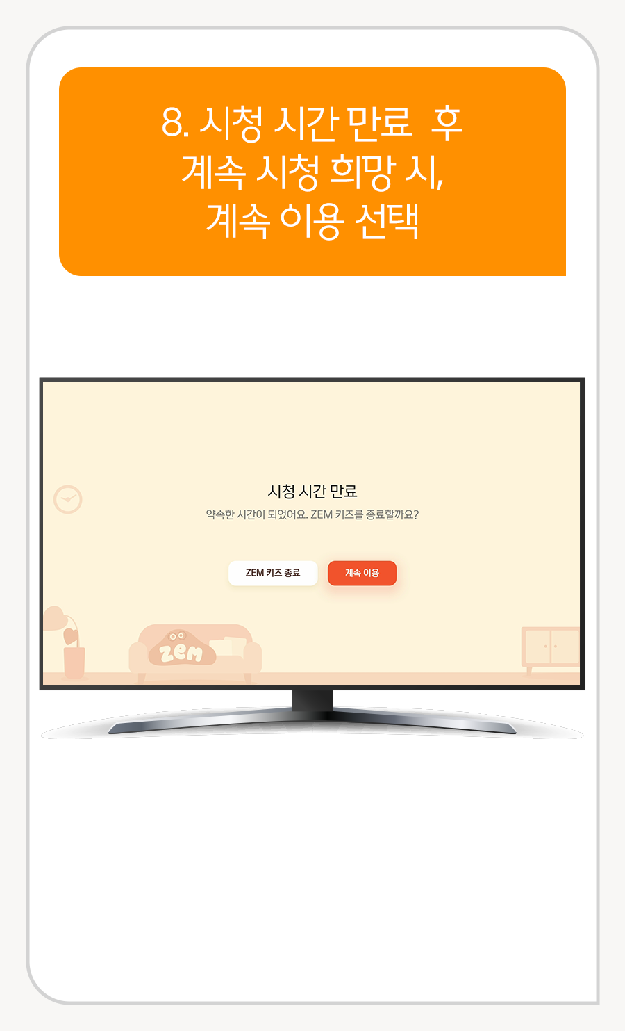8. 시청 시간 만료 후 계속 시청 희망시, [계속 이용] 선택
