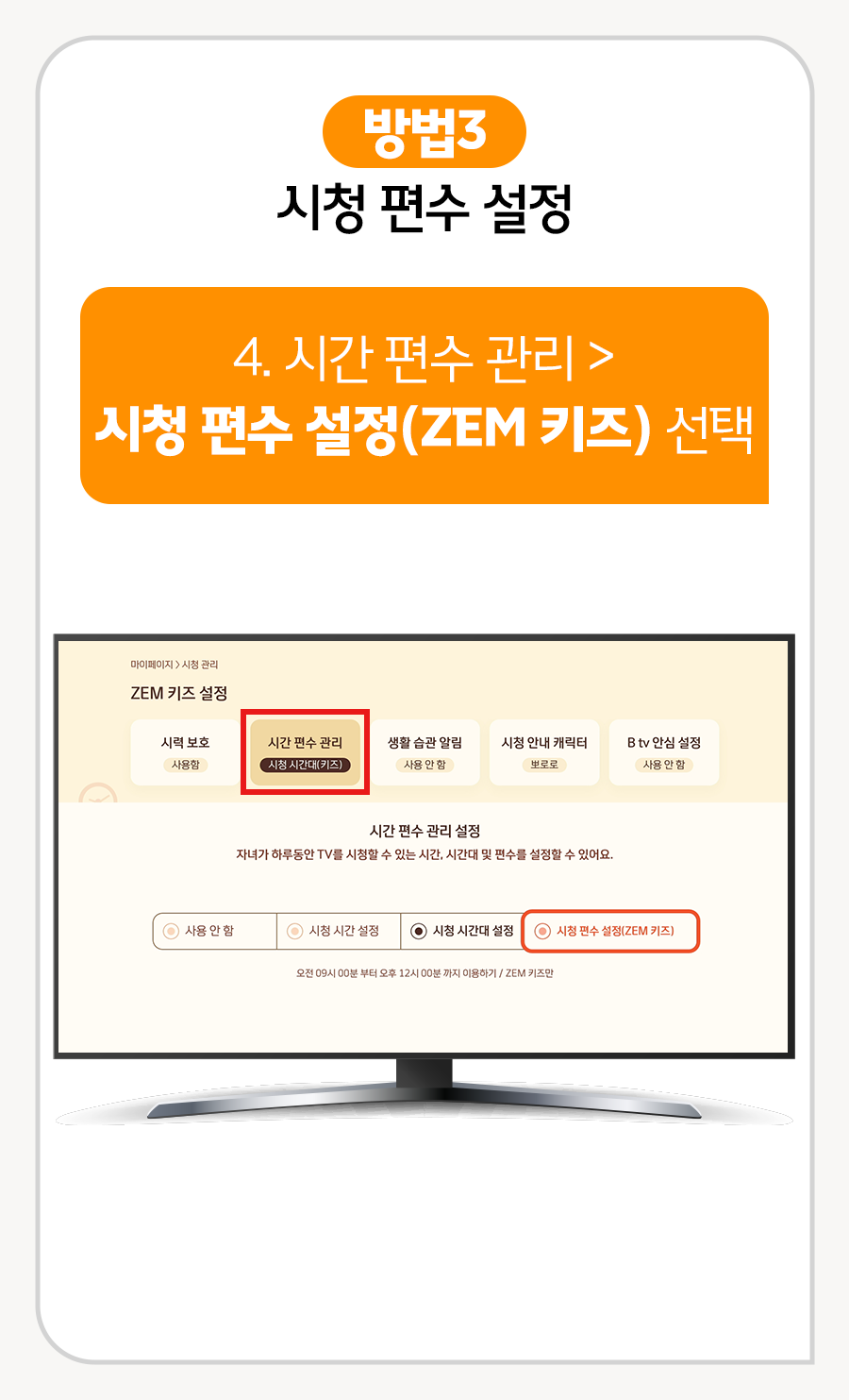 4. [시간 편수 관리] ▶ [시청 시간대 설정] 선택