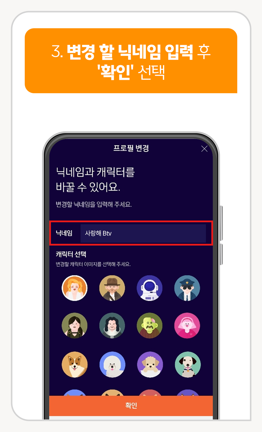 3. 변경 할 닉네임 입력 후 [확인] 선택