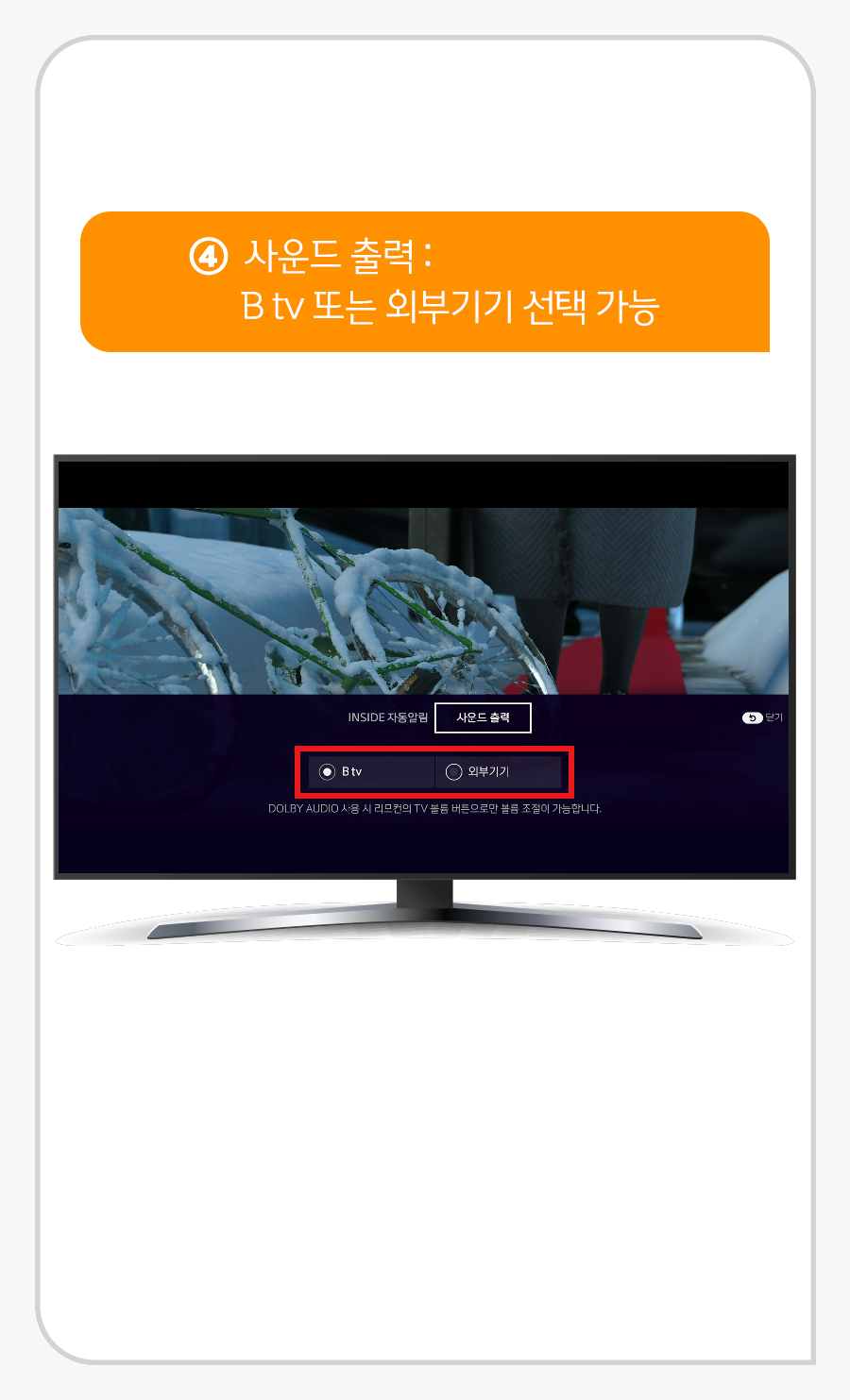 ④ 사운드 출력 : B tv 또는 외부기기 선택 가능