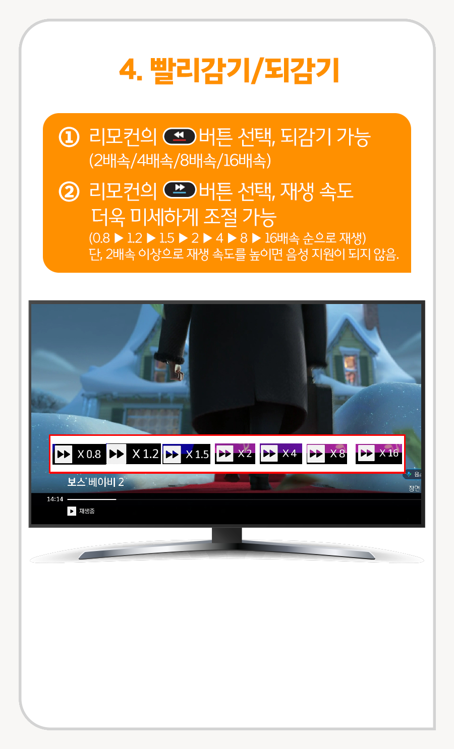 단, 2배속 이상으로 재생 속도를 높이면 음성 지원이 되지 않음.