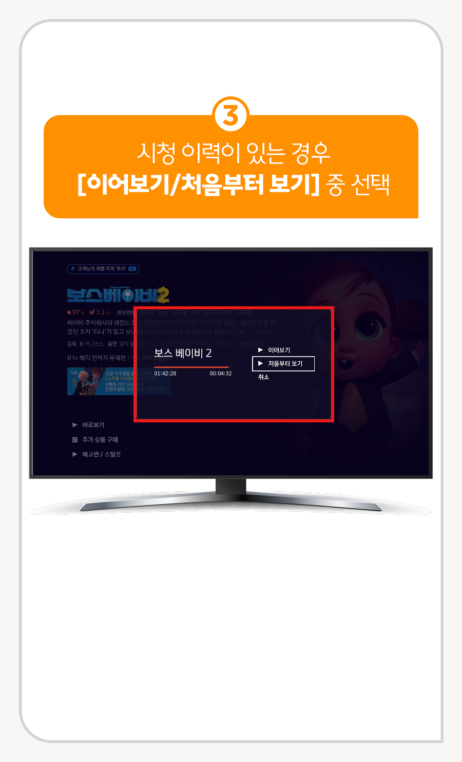 ③ 시청 이력이 있는 경우 [이어보기/처음부터 보기] 중 선택