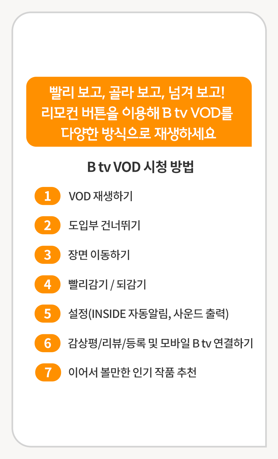 리모컨 버튼을 이용해 B tv VOD를 다양한 방식으로 재생하세요.