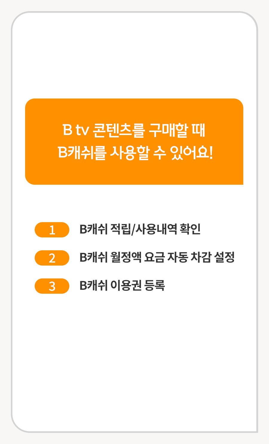 B tv 콘텐츠를 구매할 때 B캐쉬를 사용할 수 있어요!