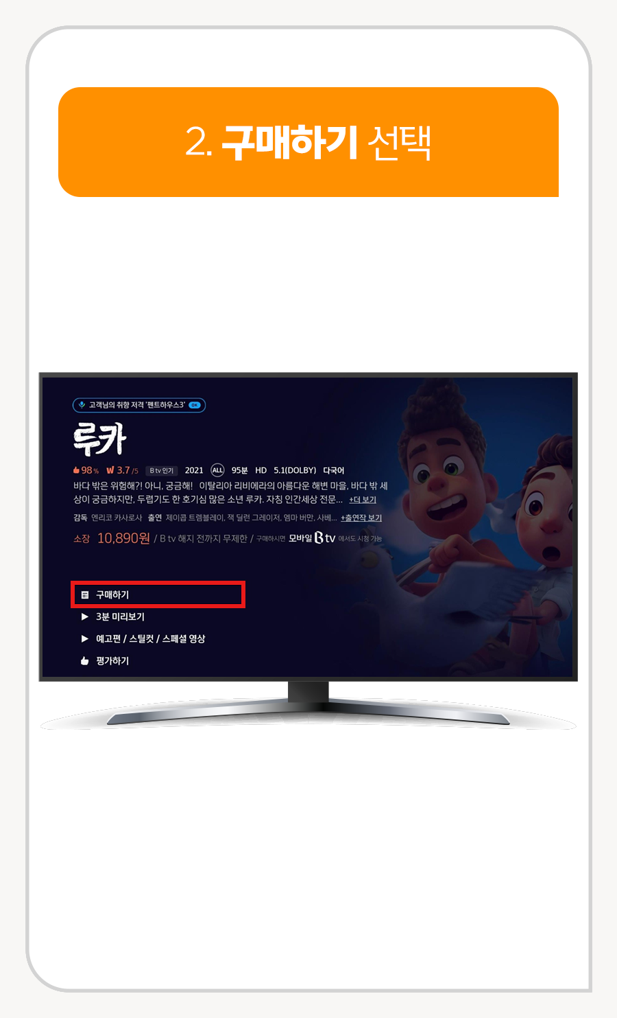 1. 리모컨 홈 버튼 누른 후 구매할 VOD 선택