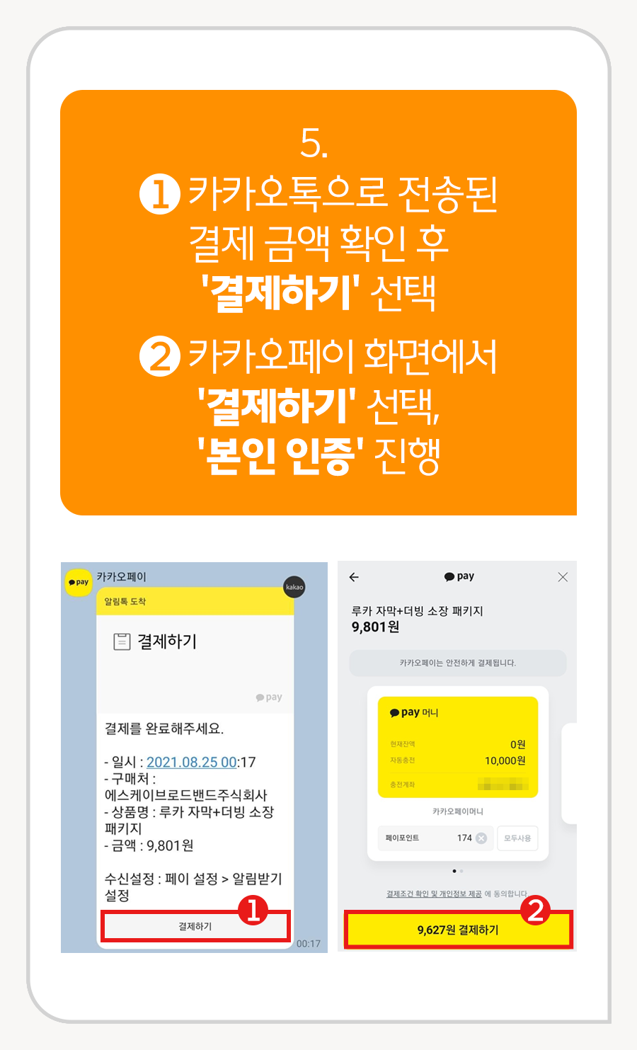 5-2 카카오페이 화면에서 [결제하기] 선택, [본인 인증] 진행