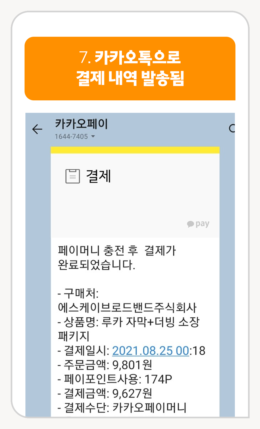 7. 카카오톡으로 결제 내역 발송됨
