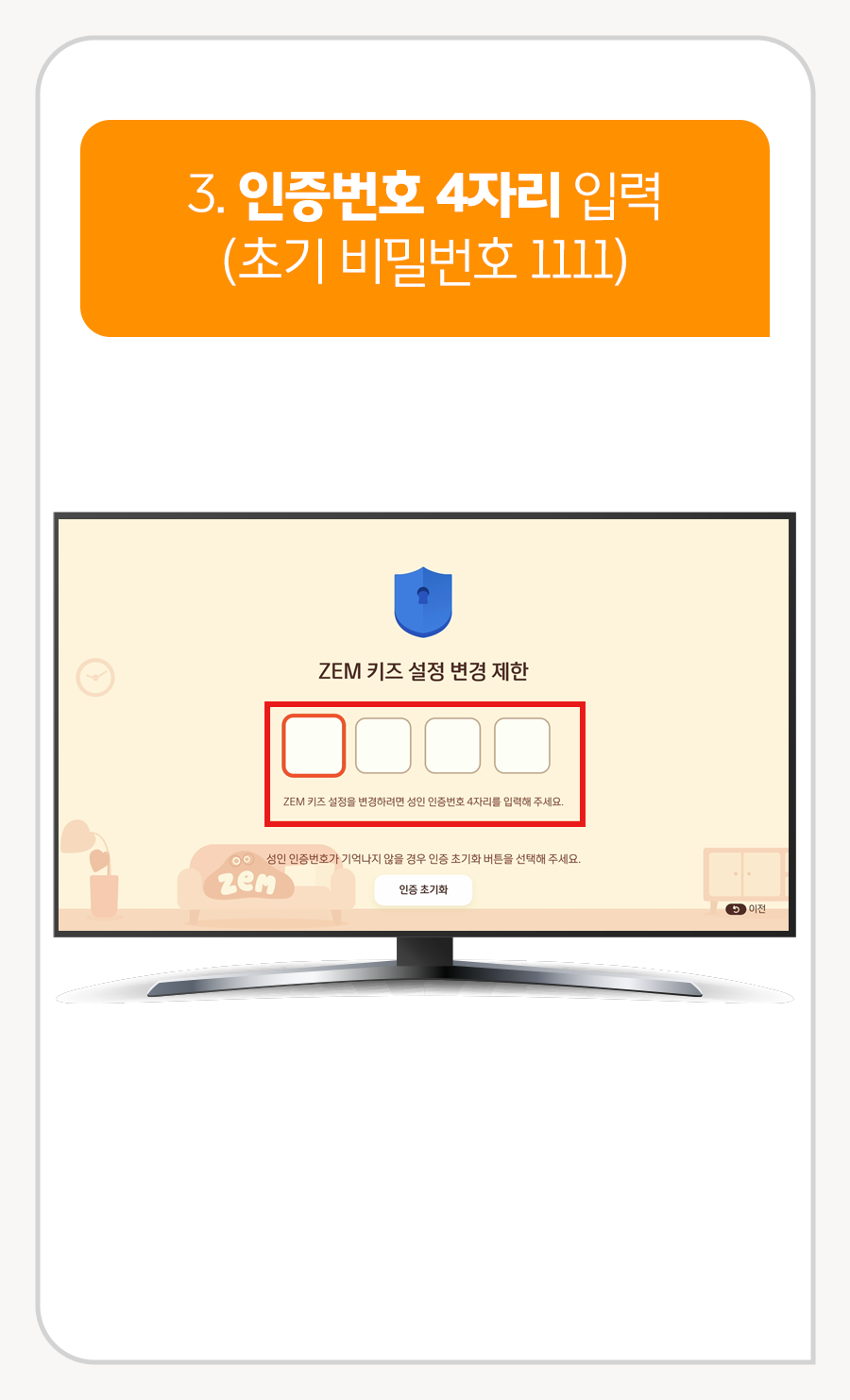 3. 인증번호 4자리 입력 (초기 비밀번호 1111)