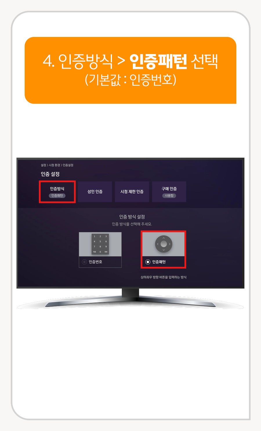 안전한 B tv 사용을 위해 인증번호 또는 인증패턴 중 한가지 방식으로 설정해보세요!