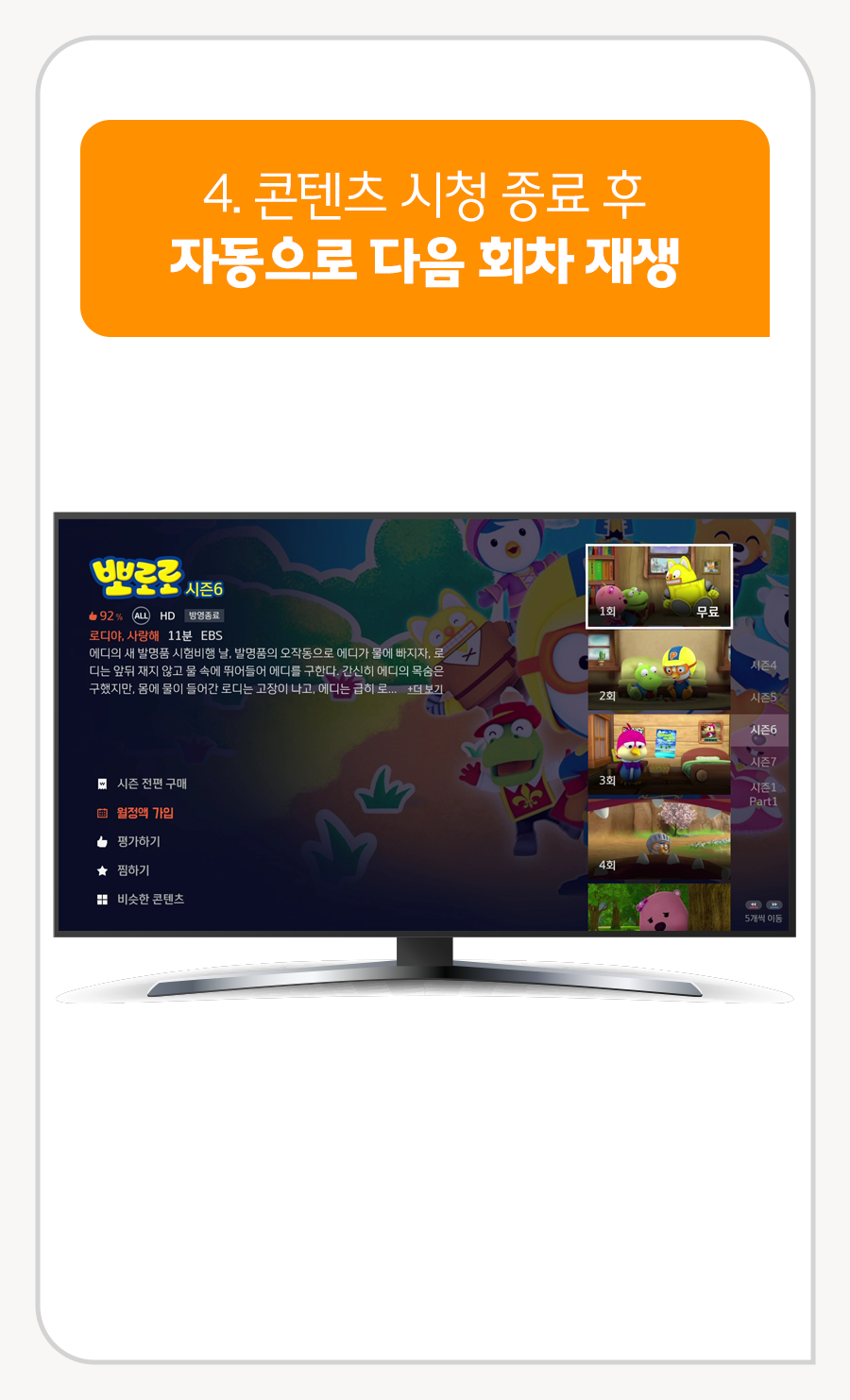 4. 콘텐츠 시청 종료 후 자동으로 다음 회차 재생