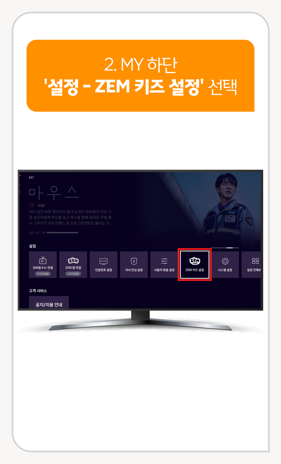 B tv 홈 ▶ MY ▶ 설정 ▶ ZEM 설정 ▶ B tv 안심 설정