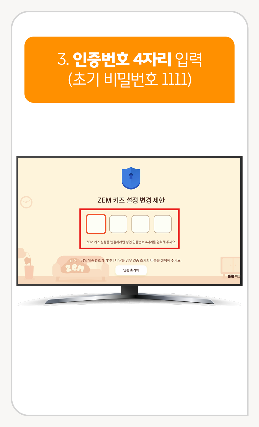 3. 인증번호 4자리 입력 (초기 비밀번호 1111)