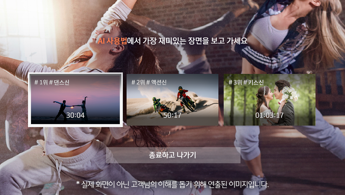 * VOD의 3 ~ 50%까지 재생했을 경우에만 AI B tv가 TOP3 장면을 추천해 드립니다.