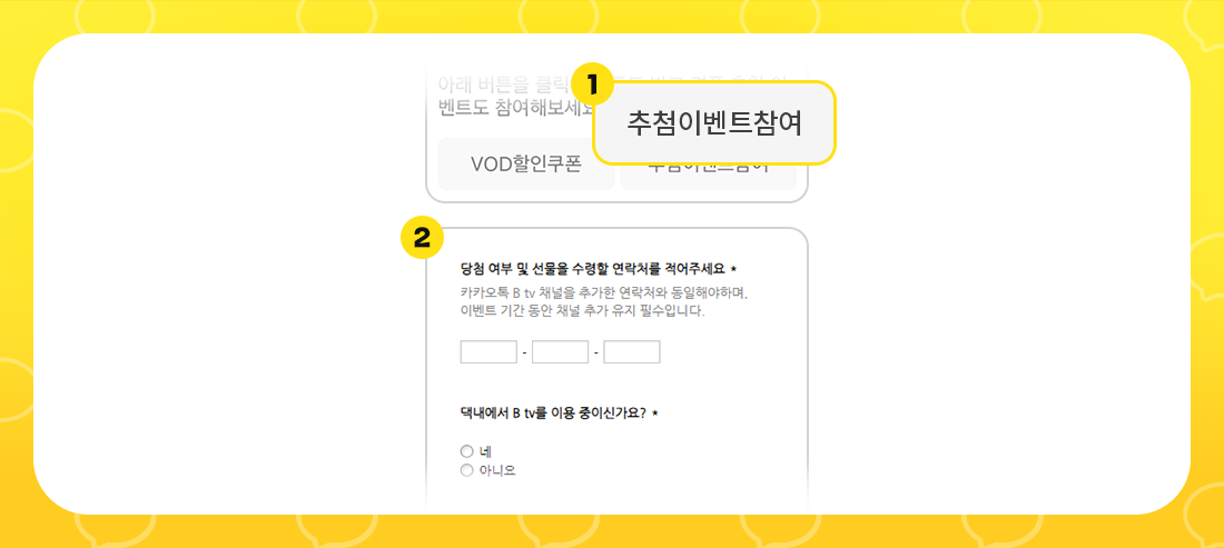 B tv 카카오톡 채널 친구 추가 이벤트에 참여하시고 꿀팁과 선물 모두 받아가세요~!