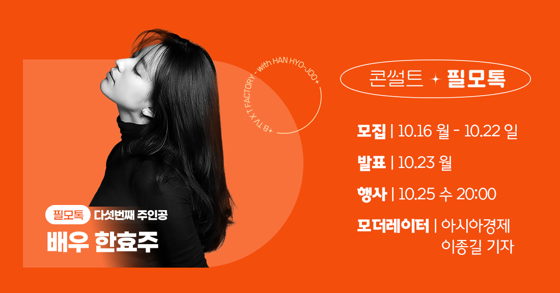 10월 25일 월요일 저녁 8시, 한효주 배우와 함께하는 필모톡에 여러분을 초대합니다!